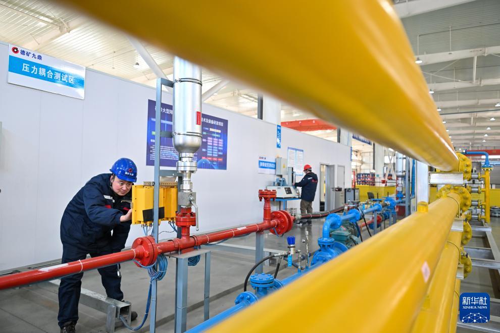 在位于京津中關(guān)村科技城的德礦九鼎(天津)科技有限公司,工作人員在對一壓力耦合裝置中試平臺進(jìn)行調(diào)試(1月23日攝)。
