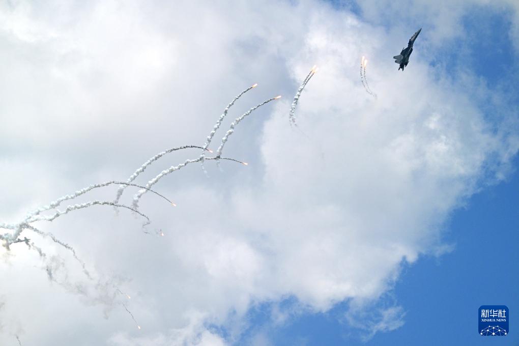 2月3日,一架馬來西亞皇家空軍SU-30MKM戰(zhàn)斗機(jī)在第十屆新加坡航展首日進(jìn)行飛行表演。