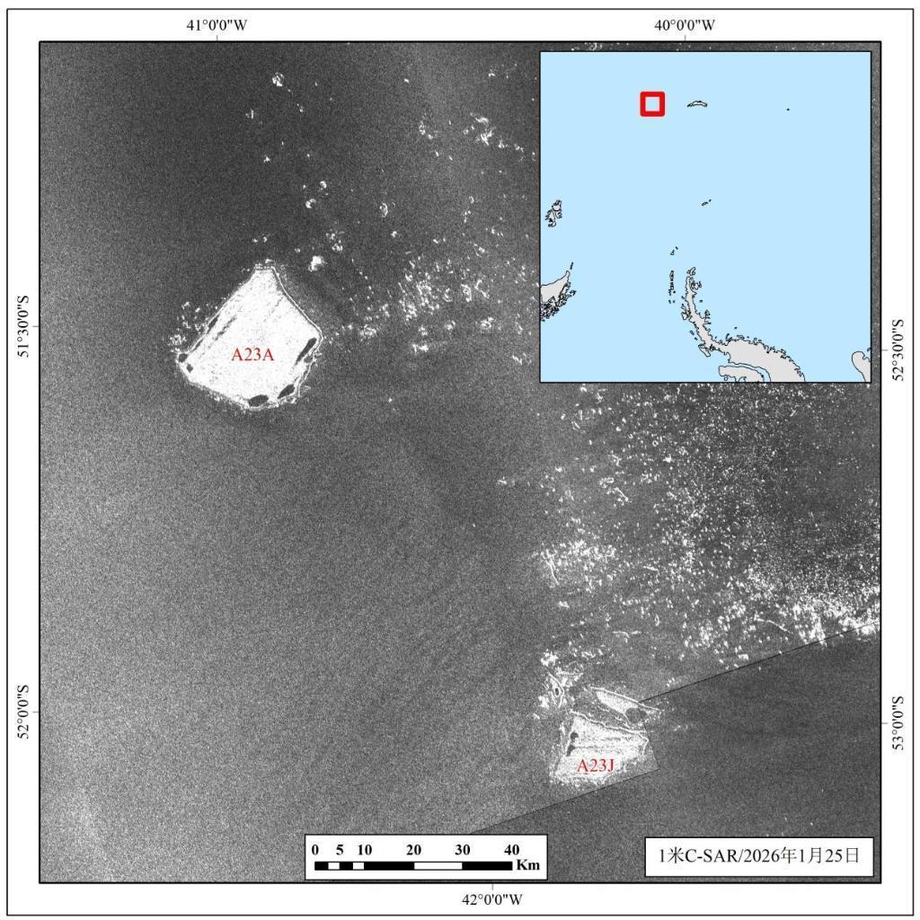 我國(guó)海洋衛(wèi)星1米C-SAR衛(wèi)星持續(xù)監(jiān)測(cè)發(fā)現(xiàn),位于南極的世界最大冰山A23a冰山正加速崩解,2025年4月以后,A23a冰山不斷破碎出小的冰山,且在洋流作用下,圍繞地處南大西洋的南喬治亞島漂移。