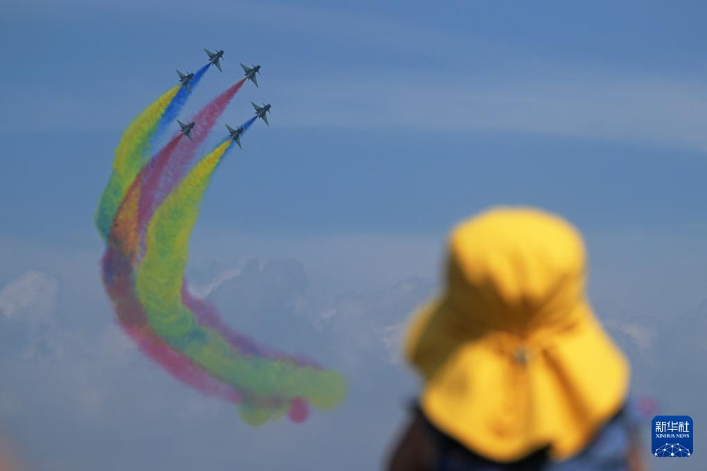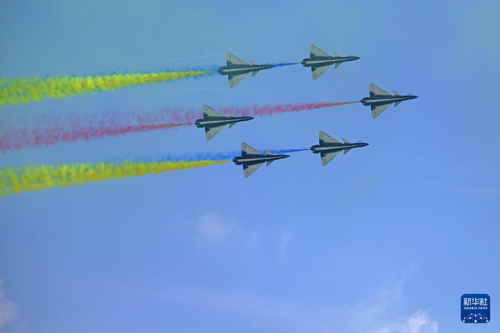 2月7日,在新加坡樟宜展覽中心,中國(guó)空軍八一飛行表演隊(duì)進(jìn)行飛行表演。新華社發(fā)(鄧智煒攝)
