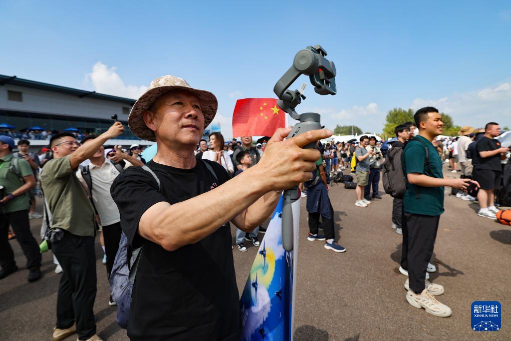 2月7日,在新加坡樟宜展覽中心,觀眾觀看中國(guó)空軍八一飛行表演隊(duì)的飛行表演。新華社發(fā)(朱姜海攝)