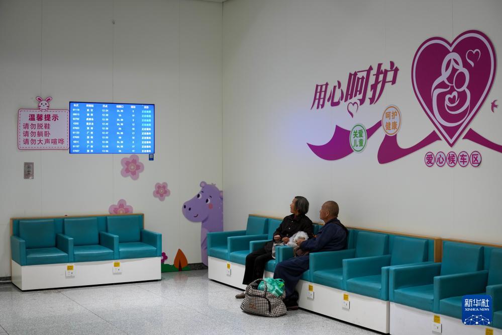 2月19日,旅客在廣州白云站愛心候車區(qū)內(nèi)候車。