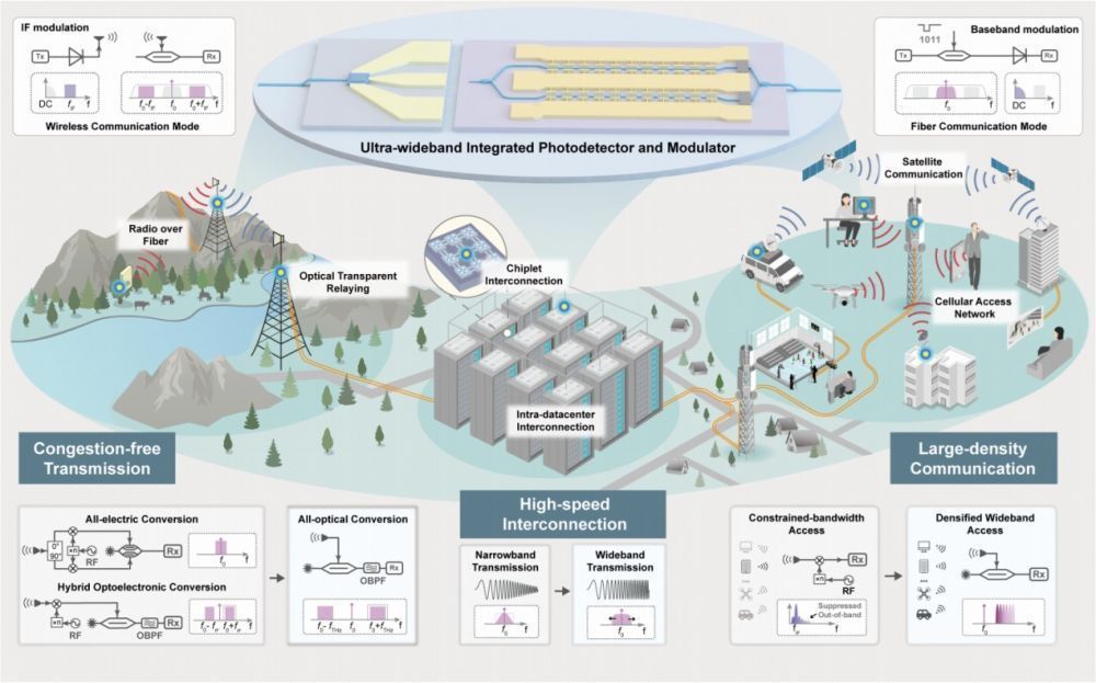 AI數(shù)據(jù)中心算力提升和下一代無線通信網(wǎng)絡6G的蓬勃發(fā)展,要求在多樣化場景滿足信號的高速、低時延傳輸。然而,光纖通信與無線通信在信號架構與硬件約束上存在“帶寬鴻溝”。