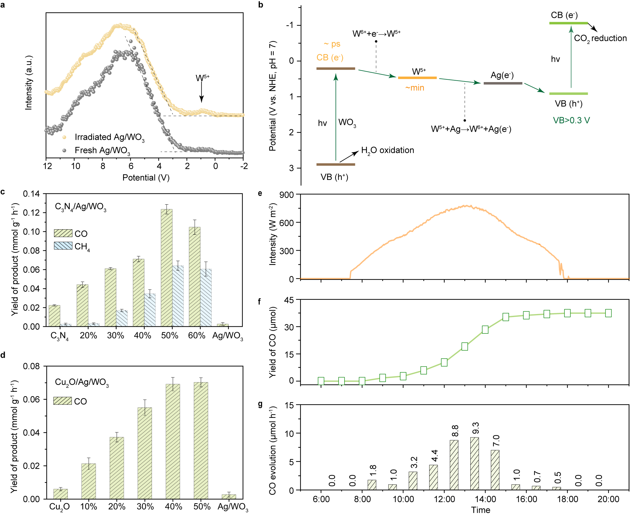 記者了解到,該研究團(tuán)隊(duì)模仿植物暫存光生電子的生理機(jī)制,設(shè)計(jì)出具有電子存儲(chǔ)功能的銀修飾三氧化鎢材料,通過(guò)精準(zhǔn)調(diào)控電子釋放過(guò)程,實(shí)現(xiàn)了二氧化碳與水在自然光下的高效協(xié)同轉(zhuǎn)化。
