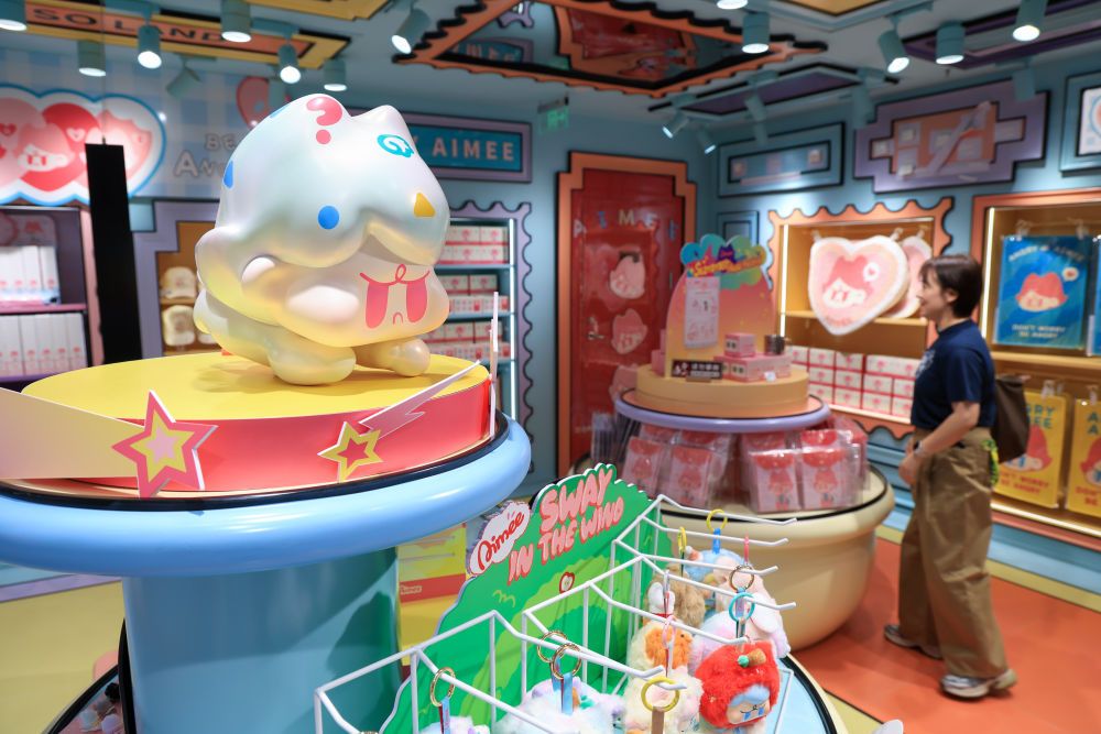 2025年10月28日,在廣州的名創(chuàng)優(yōu)品MINISO LAND(城市樂(lè)園店),顧客選購(gòu)原創(chuàng)IP潮玩產(chǎn)品。新華社記者 毛思倩 攝