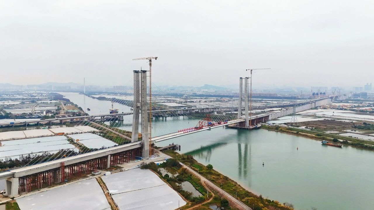 記者10日從國(guó)鐵廣州局獲悉,2月10日10點(diǎn),隨著一段長(zhǎng)6米、寬17米、重約72噸的鋼梁精準(zhǔn)吊裝到位,由廈深鐵路廣東有限公司建設(shè)、中鐵廣州工程局集團(tuán)施工的國(guó)內(nèi)首座大跨度雙邊鋼箱混凝土組合梁鐵路斜拉橋——深江鐵路廣中江特大橋跨雞鴉水道主橋順利合龍,成為深江鐵路全線第一座合龍的主橋,為全線后續(xù)架梁、鋪軌等工序推進(jìn)筑牢堅(jiān)實(shí)基礎(chǔ)。