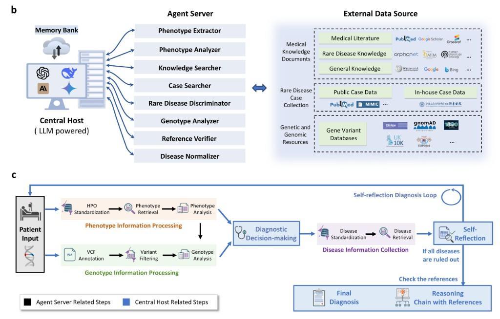 該研究由上海交通大學張婭教授、謝偉迪副教授與新華醫(yī)院孫錕教授、余永國教授領(lǐng)銜攻關(guān),DeepRare創(chuàng)新性采用“中樞—分身”架構(gòu),實現(xiàn)對傳統(tǒng)醫(yī)學AI的代際超越。其打破數(shù)據(jù)孤島,整合海量醫(yī)學文獻與臨床病例實現(xiàn)知識深度內(nèi)化;摒棄傳統(tǒng)AI的模式匹配,通過“假設(shè)—驗證—自我反思”的類人類“慢思考”能力推敲診斷線索;更實現(xiàn)全流程循證的“白盒推理”,每一個診斷結(jié)論都附帶可溯源的完整證據(jù)鏈,破解AI醫(yī)療的信任危機。