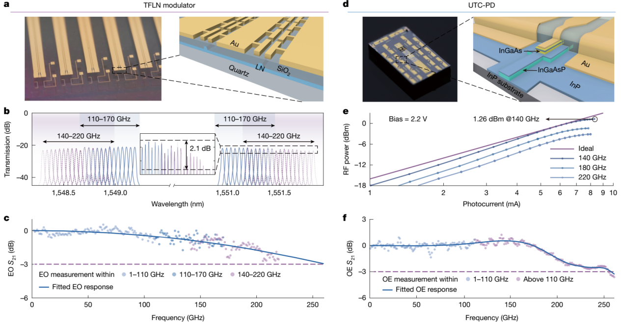 論文通訊作者、北京大學(xué)電子學(xué)院副院長(zhǎng)王興軍教授表示,該成果就像是通信領(lǐng)域的“全能戰(zhàn)士”,除實(shí)現(xiàn)兼容且超大容量通信外,在能耗、成本、規(guī)?;确矫嬉灿凶吭降谋憩F(xiàn)。未來可在6G基站、無線數(shù)據(jù)中心等場(chǎng)景中廣泛應(yīng)用。該成果成功突破三項(xiàng)世界紀(jì)錄,包括250GHz(千兆赫茲)以上超大帶寬的光電/電光轉(zhuǎn)換器件、薄膜鈮酸鋰調(diào)制器和磷化銦探測(cè)器帶寬。