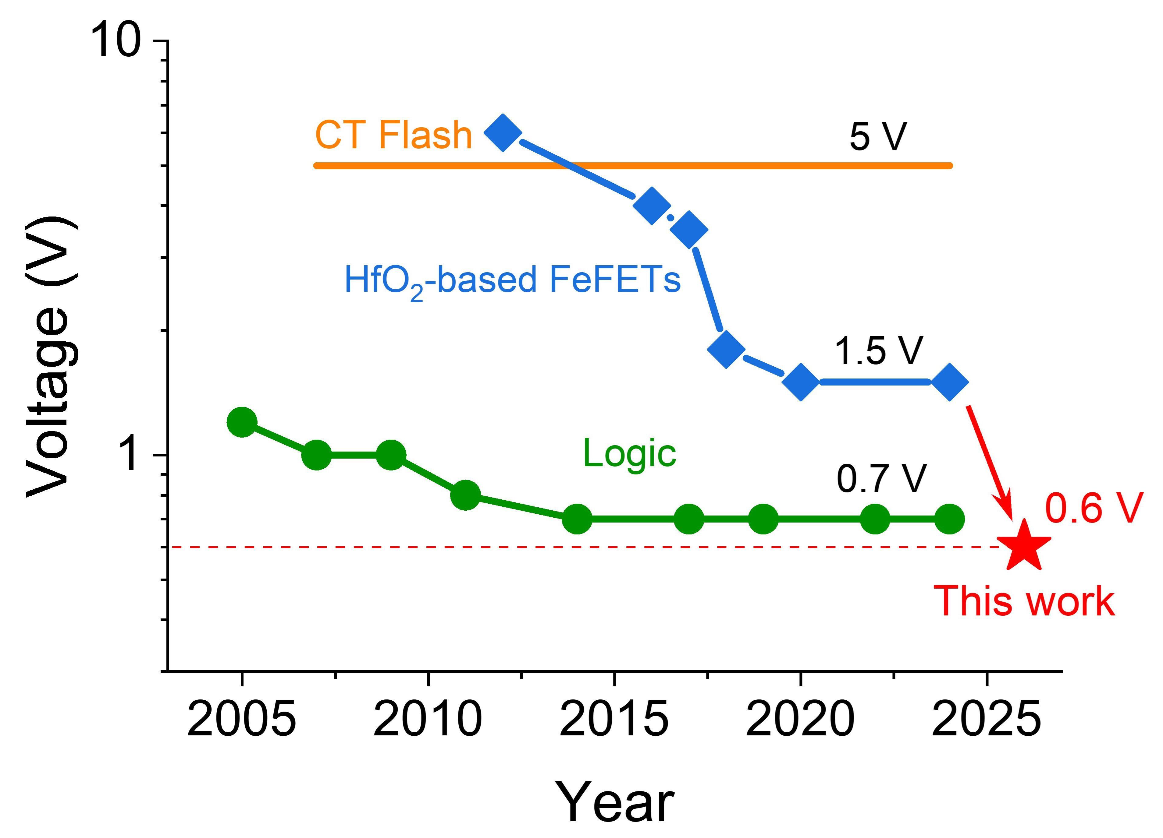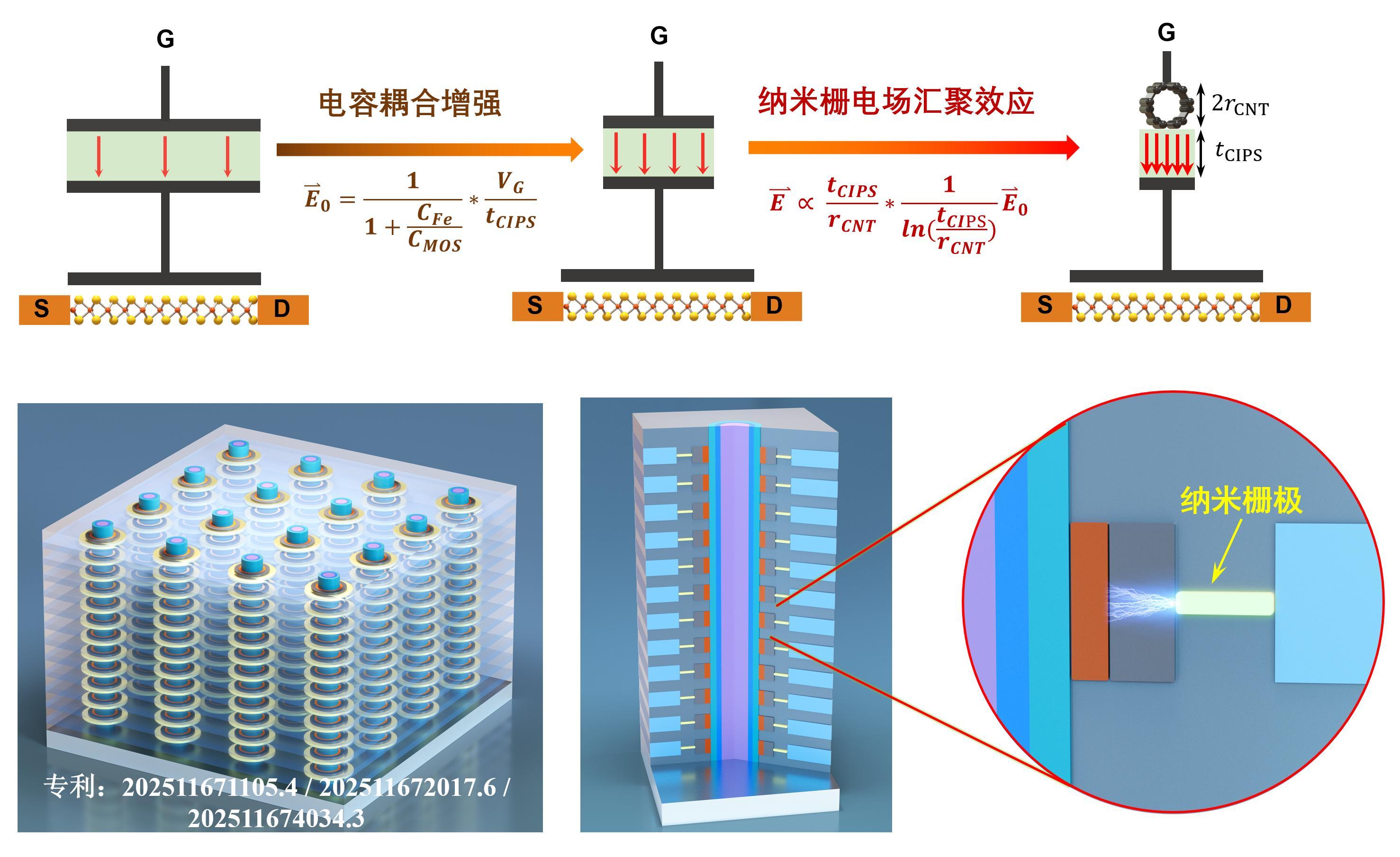然而,傳統(tǒng)鐵電晶體管存在能耗過高、邏輯電壓不匹配等短板限制了其大規(guī)模應(yīng)用。為此,北京大學(xué)邱晨光研究員—彭練矛院士團(tuán)隊,利用納米柵極結(jié)構(gòu)設(shè)計,巧妙解決了鐵電材料“改變極化狀態(tài)”需要高電壓高能耗的問題。