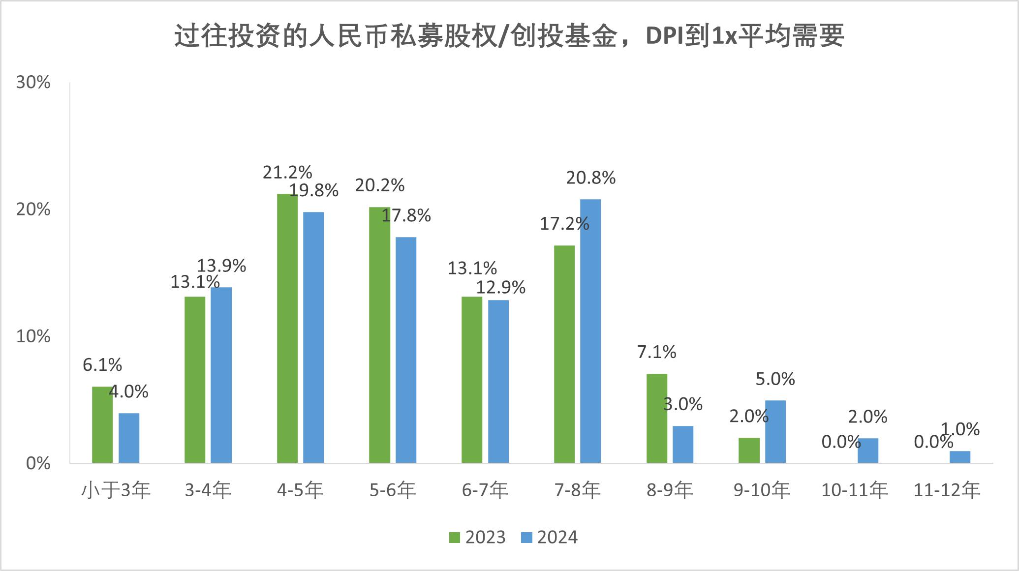 超半數(shù)(53.5%)機構(gòu)需5-8年實現(xiàn)DPI到1x;59.4%認為回本周期會延長,機構(gòu)對市場環(huán)境預(yù)期較為悲觀。