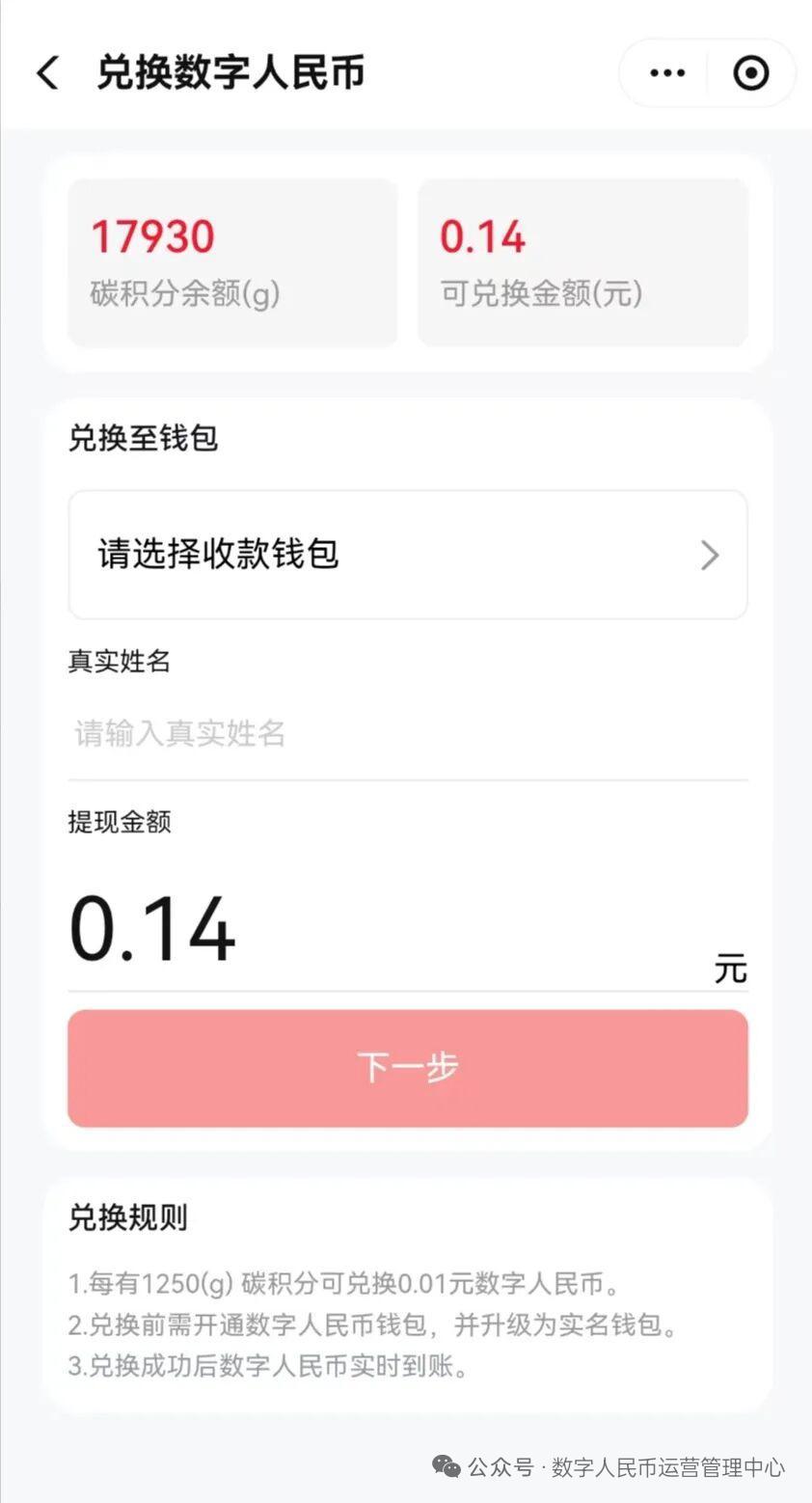 用戶開(kāi)通該服務(wù)后,日常綠色低碳行為,如騎共享單車、乘坐地鐵公交等,都能被量化成“碳積分”。這些碳積分將自動(dòng)歸集至“碳普惠”賬戶,并可以兌換數(shù)字人民幣。據(jù)悉,每1250(g)碳積分可兌換0.01元。