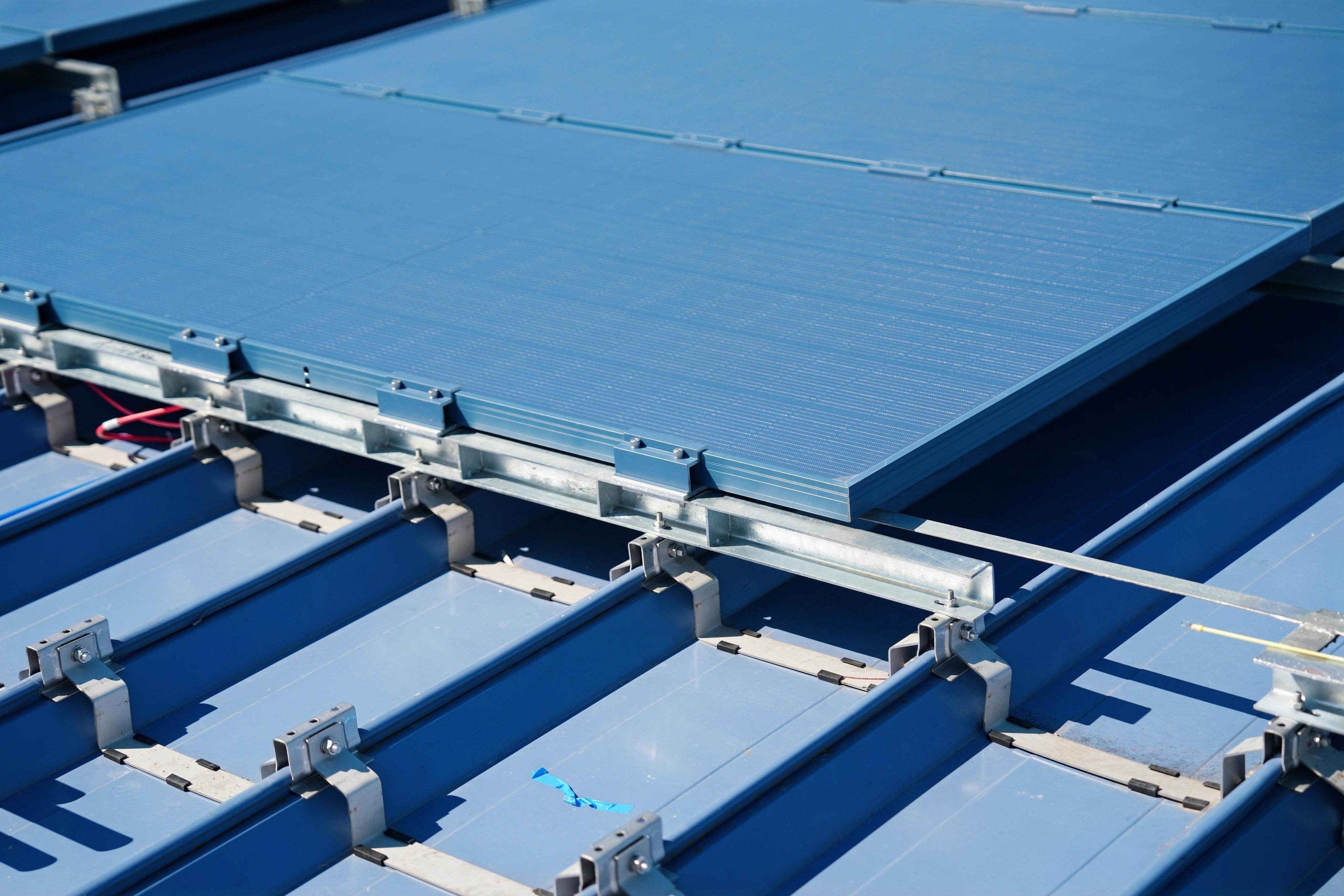 常規(guī)的加厚板材方案行不通,只會(huì)增加重量?!皥F(tuán)隊(duì)最終創(chuàng)新性地提出了‘0.7毫米不銹鋼板瓦楞結(jié)構(gòu)’解決方案?!边h(yuǎn)東綠能產(chǎn)品研發(fā)經(jīng)理黃劍介紹,團(tuán)隊(duì)將不銹鋼板沿屋面短邊方向軋制成瓦楞狀,這一巧思相當(dāng)于將整個(gè)屋面分割為多個(gè)獨(dú)立加強(qiáng)的小單元,提升了結(jié)構(gòu)強(qiáng)度和抗風(fēng)揭能力,同時(shí)完美保持了材料的輕量化特性。配合縱向增設(shè)的多個(gè)固定點(diǎn),團(tuán)隊(duì)在承重極限內(nèi),為屋頂披上了一層堅(jiān)固的“發(fā)電鎧甲”,破解了在輕型屋面上實(shí)現(xiàn)高抗風(fēng)性能光伏鋪設(shè)的難題。