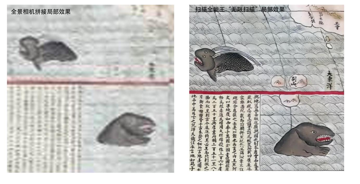 大會(huì)現(xiàn)場,觀眾可以上下、左右滑動(dòng)拍攝視頻,AI在“觀看”視頻后,理解圖像、文字特征并挑選出合適的局部圖像,優(yōu)化圖像質(zhì)量,拼接形成一張高清、美觀的“收藏級(jí)”大圖?;贏I對(duì)圖像的理解,掃描全能王還可智能識(shí)別《坤輿萬國全圖》中的山河疆域、神奇動(dòng)物等元素,當(dāng)觀眾點(diǎn)擊指定區(qū)域時(shí),就能了解400多年前的人們對(duì)世界的認(rèn)知,實(shí)現(xiàn)“讓文物說話,讓歷史發(fā)聲”的數(shù)字化體驗(yàn)。
