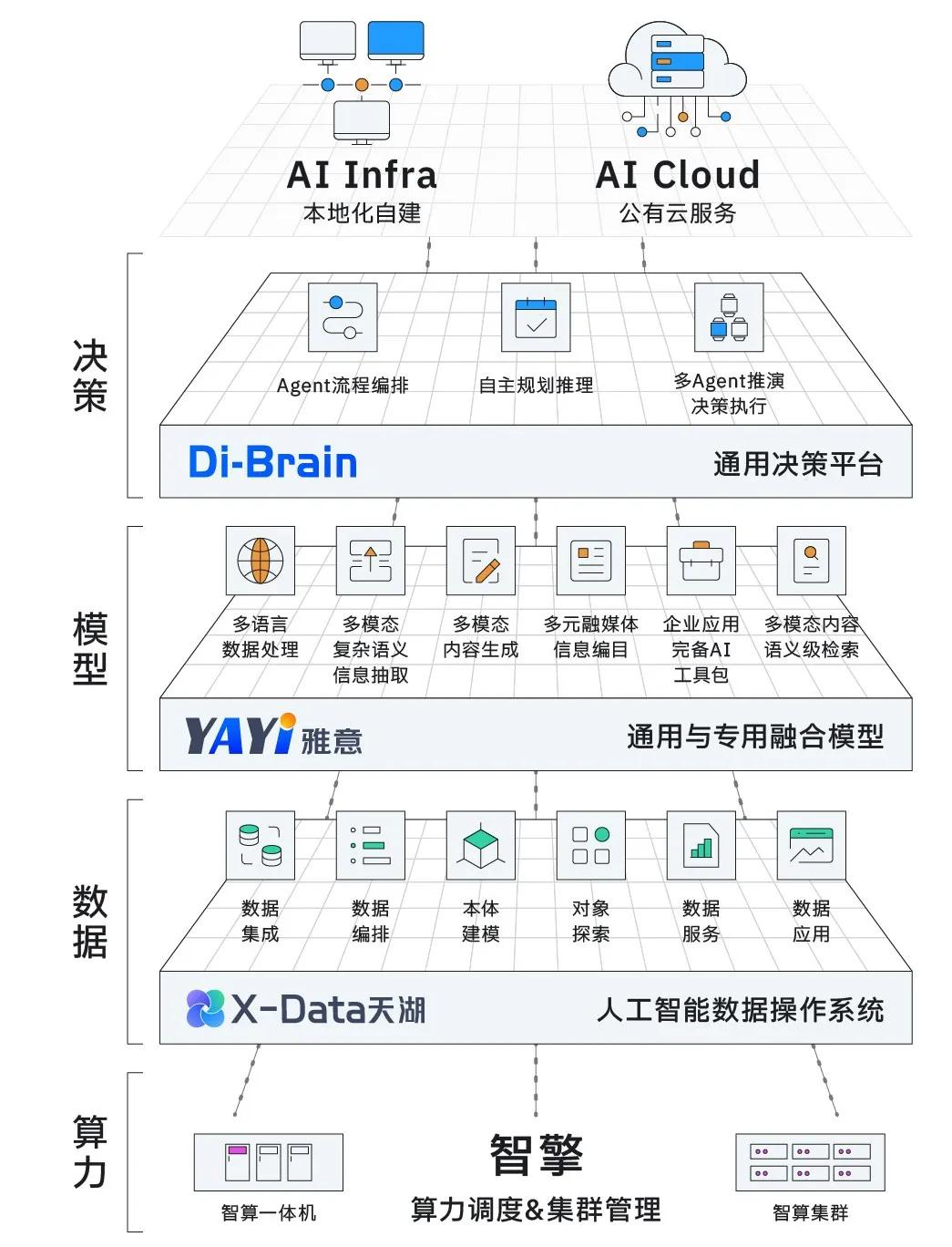 在模型層面,DIOS行業(yè)級大模型,讓AI真正理解業(yè)務(wù)。內(nèi)置通專融合的雅意系列模型,DIOS具備多語言、多模態(tài)處理能力,在跨語言理解、復(fù)雜信息抽取、內(nèi)容生成、行業(yè)數(shù)據(jù)增強(qiáng)、智能任務(wù)規(guī)劃等方面表現(xiàn)領(lǐng)先,兼具高遷移性與算力調(diào)度效率。此外,平臺(tái)融合中國科學(xué)院磐石科學(xué)基礎(chǔ)大模型與自研D1決策大模型,提供“科學(xué)思維+決策推演”的智能力,支撐多行業(yè)復(fù)雜場景智能應(yīng)用。