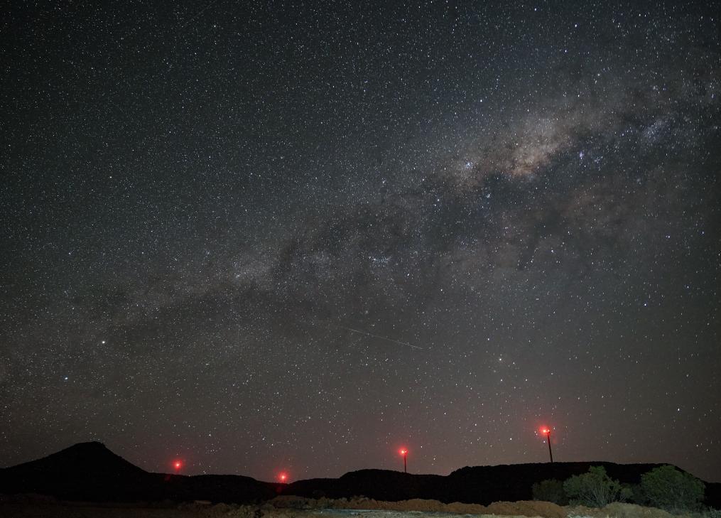 2025年10月22日,在南非北開普省德阿鎮(zhèn),德阿風(fēng)電項目的風(fēng)機在星空下運轉(zhuǎn)。新華社記者韓旭攝
