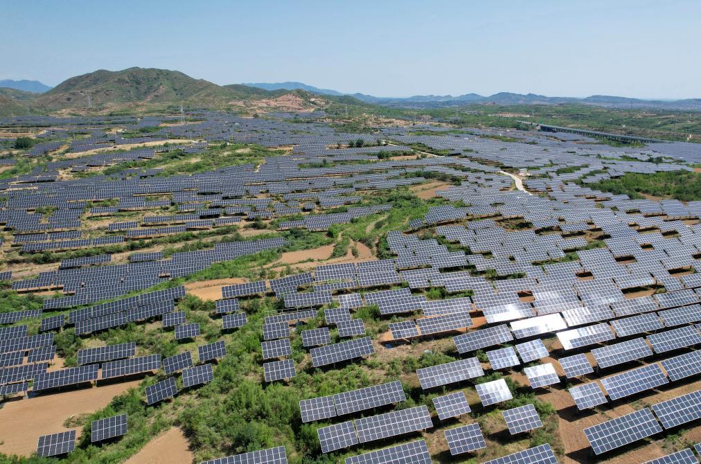 2025年6月16日拍攝的河北省贊皇縣許亭鎮(zhèn)北潘村附近的“農(nóng)光互補”光伏發(fā)電場(無人機照片)。新華社記者楊世堯攝