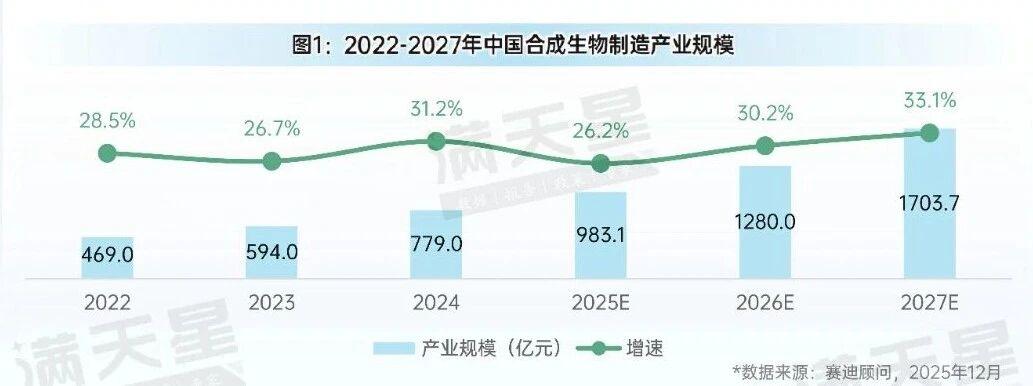 2027年中國合成生物制造產(chǎn)業(yè)規(guī)模將達1703.7億元