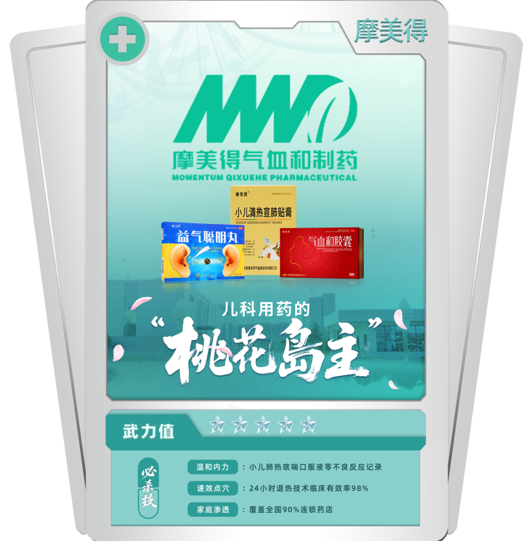 摩美得臨床渠道擁有1個獨家基藥(“雙石通淋膠囊”),3個獨家醫(yī)保(“心速寧膠囊”“止血祛瘀明目片”“小兒清熱宣肺貼膏”);OTC渠道擁有3個專利產品(“腸炎寧丸”“雙金胃腸膠囊”“復方芙蓉泡騰栓”)等;基層渠道擁有“消腫止痛貼”“腦塞通丸”等產品。企業(yè)于2015年主導創(chuàng)建的“仁醫(yī)工程”平臺,獲得行業(yè)的高度關注與認可。