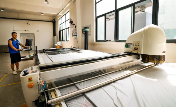 自動裁剪機如同精準的“剪刀手”,將原材料按設計圖紙裁切成規(guī)整部件,一天即可完成兩千個板材的裁剪;熱合機以恒定的溫度與壓力,讓產(chǎn)品接縫處牢固又平整……隨著自動裁剪機、自動點焊機、熱合機等自動化設備的引進,原來一個要40多人的車間現(xiàn)只需要12人左右,不僅如此,ERP、MES、WMS等軟件系統(tǒng)高效聯(lián)動,打通了生產(chǎn)加工的各個環(huán)節(jié),實現(xiàn)智慧管控、能源節(jié)能管控、智慧采購、智慧排產(chǎn)、智慧生產(chǎn)、智能倉儲。