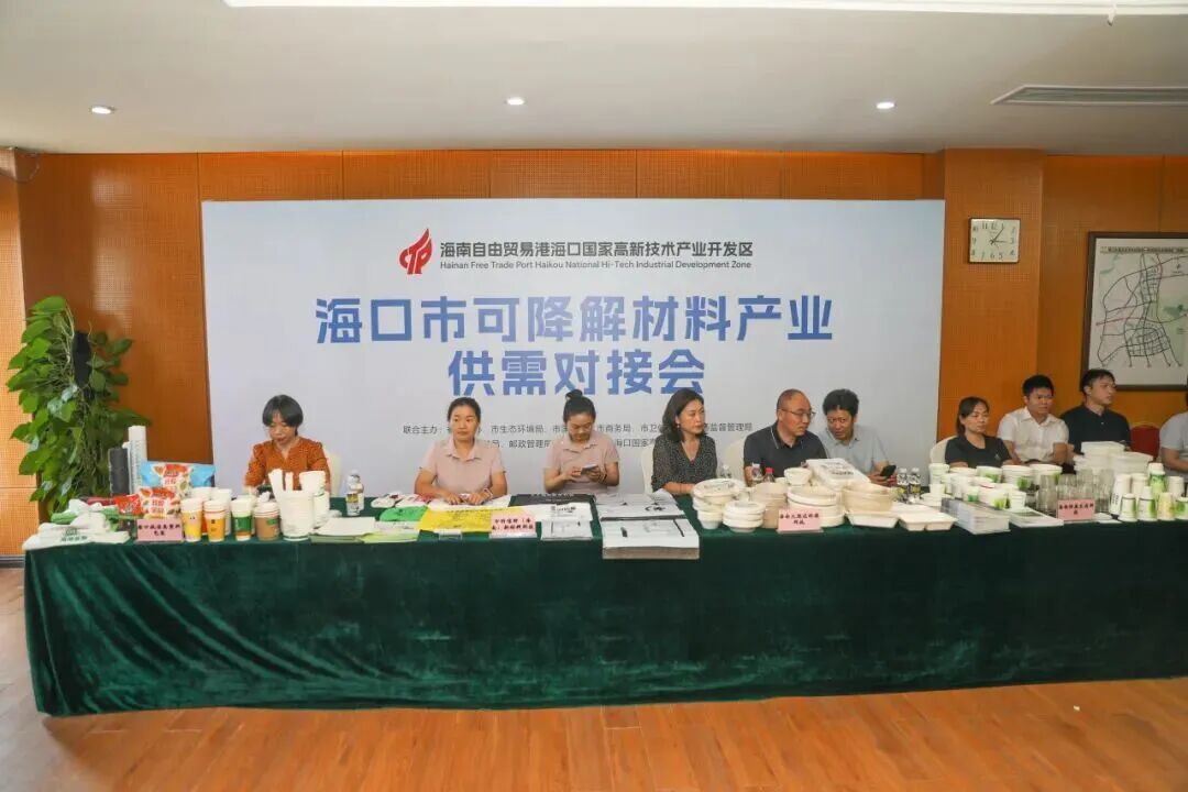 5月,??诟咝聟^(qū)聯(lián)合多部門舉辦的??谑锌山到獠牧袭a(chǎn)業(yè)供需對接會在美安生態(tài)科技新城舉行,為園區(qū)8家可降解材料生產(chǎn)企業(yè)與??谑嗅t(yī)院診所、商超、餐飲、農(nóng)貿(mào)市場、物流企業(yè)等80余家企、事業(yè)單位代表搭建起合作交流的平臺。