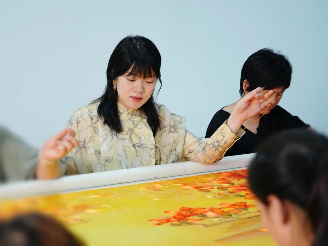 姚卓創(chuàng)立的姚繡課堂,專注于中式刺繡技藝研究與教學(xué),致力于非遺文化的傳播與推廣。創(chuàng)辦以來走進(jìn)清華大學(xué)、南京大學(xué)等知名高校,在中小學(xué)聯(lián)合設(shè)立“姚繡空間”,并延伸至韓國(guó)、新加坡等地,播撒非遺與中華優(yōu)秀傳統(tǒng)文化“種子”。
