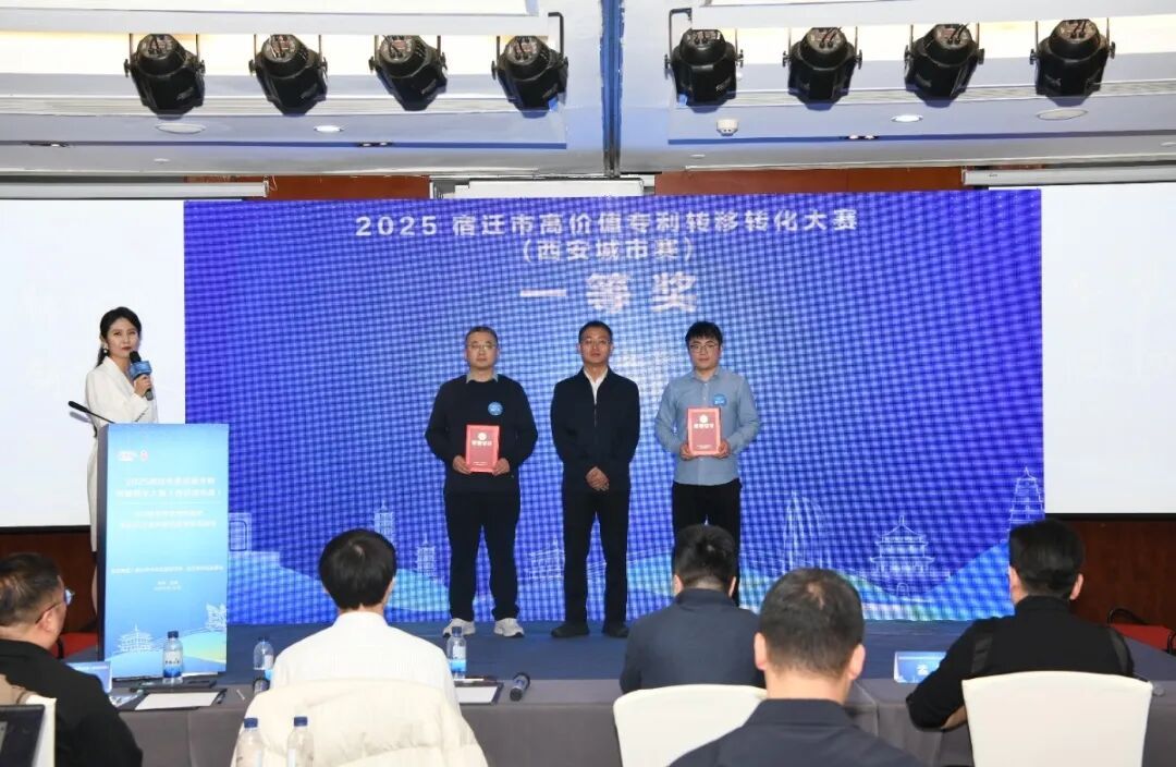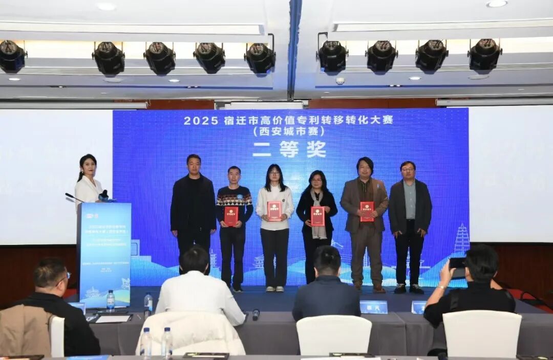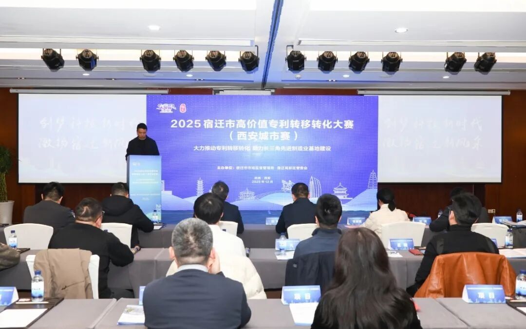 為深入貫徹專利轉(zhuǎn)化運(yùn)用專項(xiàng)行動要求,落實(shí)人才引領(lǐng)服務(wù)發(fā)展“五聯(lián)五強(qiáng)”行動,推動高價值專利成果在宿遷轉(zhuǎn)移轉(zhuǎn)化、吸引高層次人才來宿創(chuàng)新創(chuàng)業(yè),12月19日,由宿遷市市場監(jiān)管局(知識產(chǎn)權(quán)局)、宿遷高新區(qū)管委會聯(lián)合主辦的2025宿遷市高價值專利轉(zhuǎn)移轉(zhuǎn)化大賽(西安城市賽)在西安成功舉辦。宿遷市市場監(jiān)管局黨組成員、副局長胡剛,宿遷高新區(qū)黨工委委員、管委會副主任孫家勝出席大賽啟幕儀式,并為獲獎項(xiàng)目頒獎。