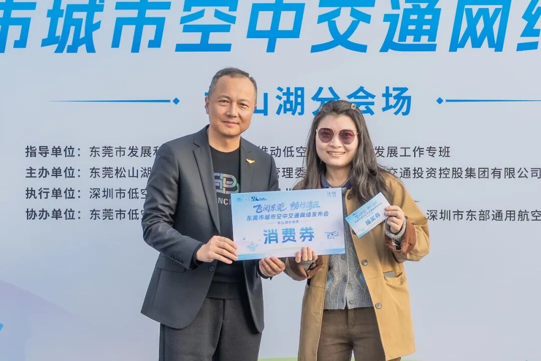 在互動(dòng)環(huán)節(jié)中,現(xiàn)場(chǎng)通過(guò)抽簽方式向三位幸運(yùn)嘉賓發(fā)放了低空飛行消費(fèi)券,鼓勵(lì)公眾親身參與低空旅游體驗(yàn)。