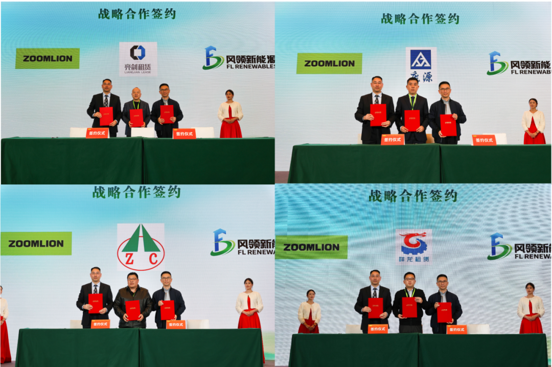 在同期舉行的戰(zhàn)略合作簽約儀式上,中聯(lián)重科與塔筒頭部企業(yè)上海風領新能源有限公司,以及吊裝領域領軍單位——廣東亮劍工程裝備服務有限公司、上海龐源機械租賃有限公司、廣州眾程機械設備有限公司、鄭州祥龍建筑機械租賃有限公司,共同簽訂了風電吊裝三方合作協(xié)議。主機廠、塔筒廠與吊裝單位緊密協(xié)同,共同建立風電吊裝施工的新標準與新范式,推動行業(yè)從單點突破走向鏈式協(xié)同,助力風電產業(yè)高質量、可持續(xù)發(fā)展,為實現(xiàn)“雙碳”目標貢獻力量。
