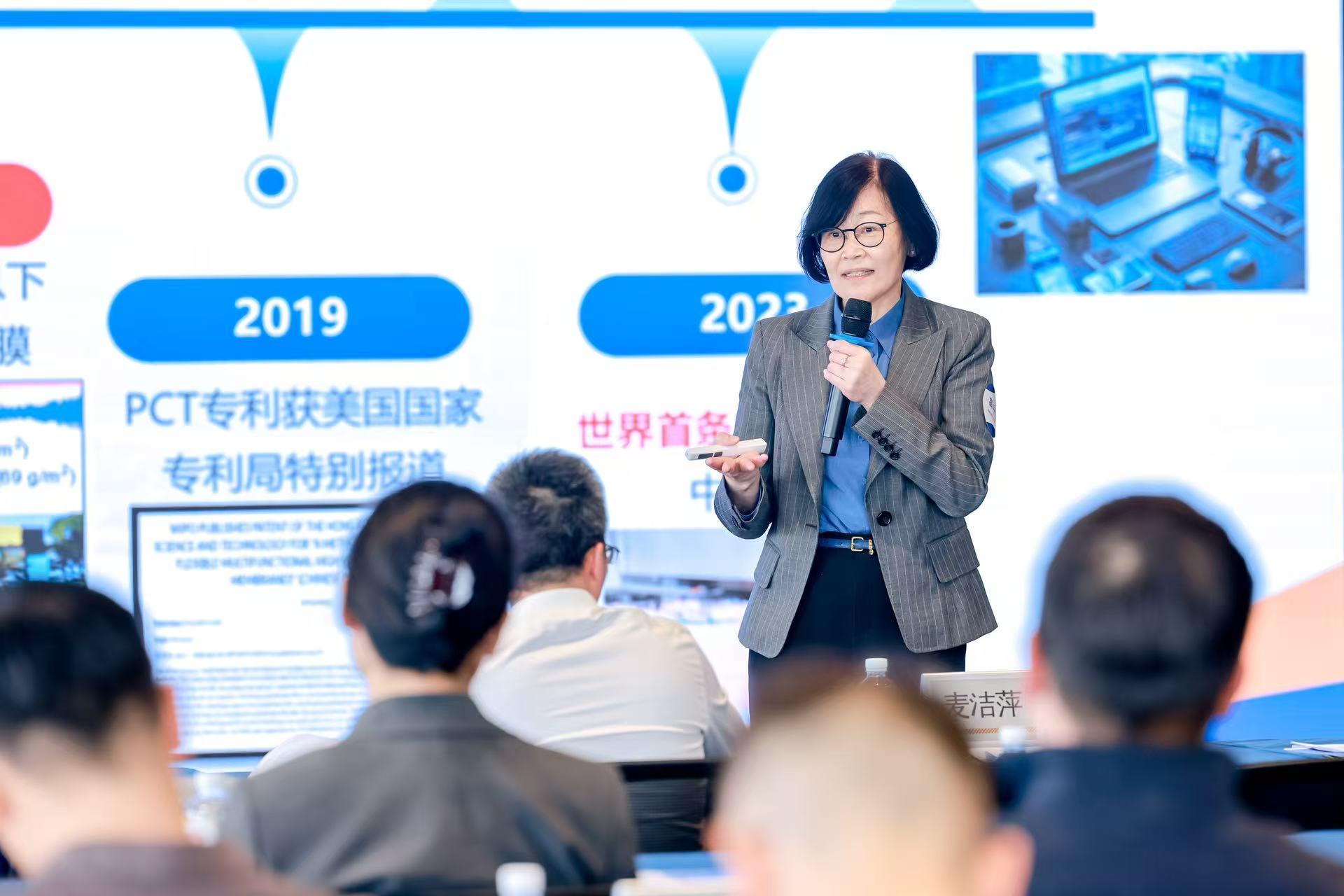 主題分享環(huán)節(jié),香港科技大學(廣州)功能樞紐先進材料學域主任高平在《超高分子量聚乙烯納米膜的開發(fā)與應用》報告中深刻指出新材料是全新物質發(fā)現或已知物質經結構重構實現性能躍升,且需實現應用領域零到一突破的物質。高平深耕超高分子量聚乙烯領域研究多年,攻克其高加工難度痛點,該材料此前已應用于防彈衣纖維、骨關節(jié)置換等領域。2017年其團隊研制出厚度僅20納米的二維單層網狀納米膜,解決傳統(tǒng)材料滑移問題,兼具多孔穩(wěn)定、強韌耐折等特性。在南沙區(qū)、廣州市政府支持下,該材料2020年實現透明防菌防毒口罩膜產業(yè)化,目前已落地華為等龍頭企業(yè),在消費電子、醫(yī)療、能源等領域形成創(chuàng)新解決方案,為國內高端制造升級提供關鍵材料支撐。