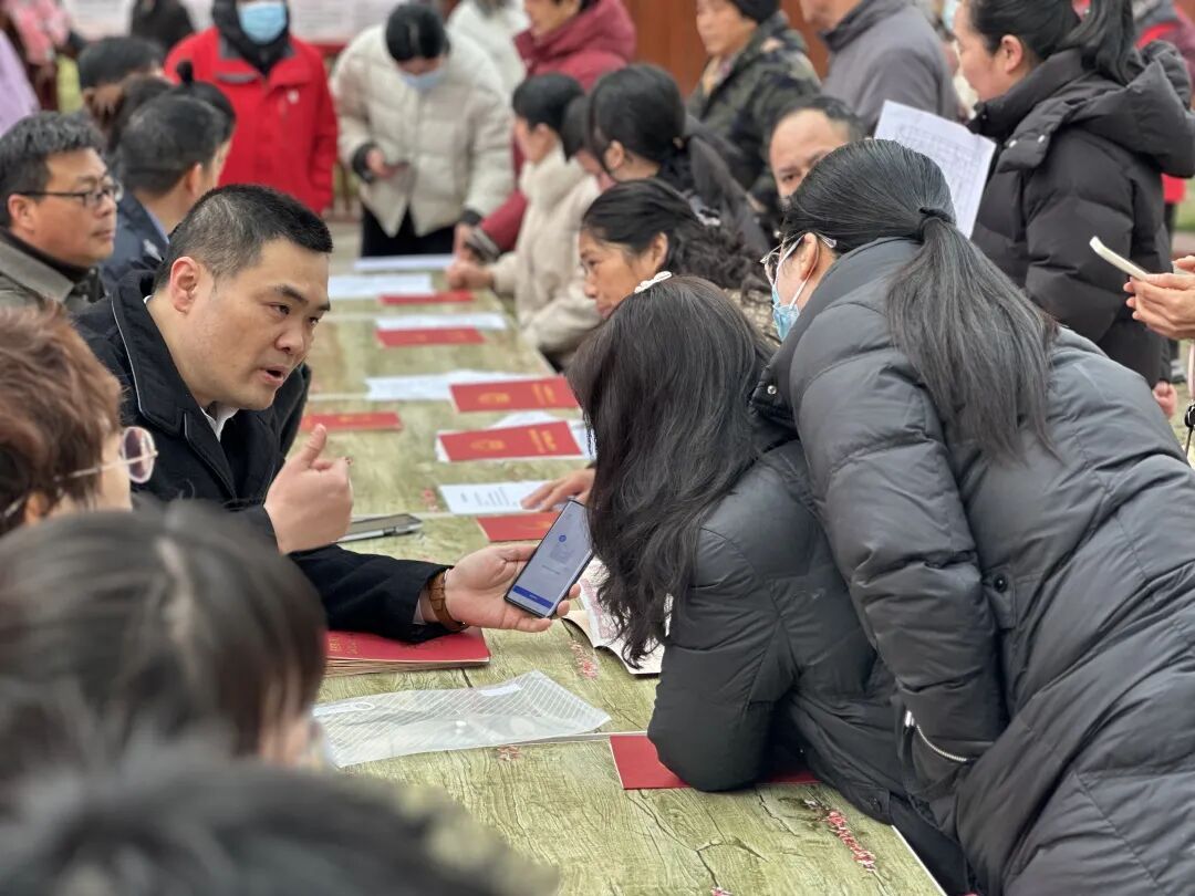 政策入戶,連心暖民。好政策需被知曉,好服務要送上門。針對群眾對政策不了解、不熟悉的普遍情況,團山鎮(zhèn)將政策宣講作為首要突破口。2026年2月4日,一場以“便民服務零距離政策宣傳暖民心”為主題的專場活動在余崗社區(qū)開展。由團山鎮(zhèn)黨委牽頭,余崗社區(qū)具體承辦,并邀請襄陽市不動產登記中心、襄陽高新區(qū)稅務局、襄陽高新區(qū)自規(guī)中心等部門業(yè)務骨干共同參與,將專業(yè)服務直接送到居民家門口。通過設立咨詢臺、發(fā)放辦事指南、現場答疑解惑等方式,用最通俗易懂的語言,面對面為居民詳細解讀辦證意義、申請條件、所需材料、費用標準以及“特辦通道”的便捷流程,并對居民關心的歷史遺留問題、稅費計算等疑慮進行一一解答。架起了職能部門與安置群眾之間的“連心橋”,打通了政策理解的“最后一米”,讓居民們對辦證從“心里沒底”變?yōu)椤靶闹杏凶V”,極大激發(fā)了大家的主動辦理意愿。
