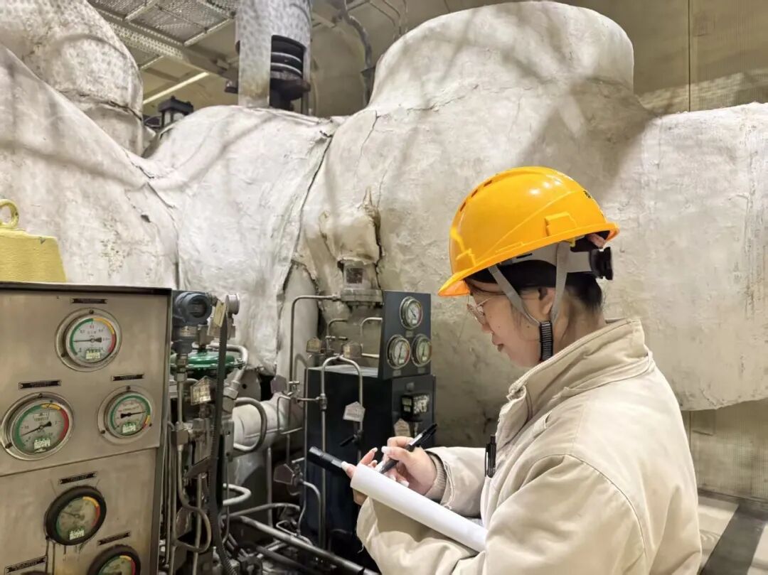 除了調(diào)整參數(shù),運(yùn)行部的工作人員還要時(shí)不時(shí)巡檢設(shè)備,一個(gè)班次走上萬(wàn)步是家常便飯。巡檢員柳欣是近幾年入職的新人,今年大年初一一早,她就準(zhǔn)時(shí)來(lái)到了工作崗位上。