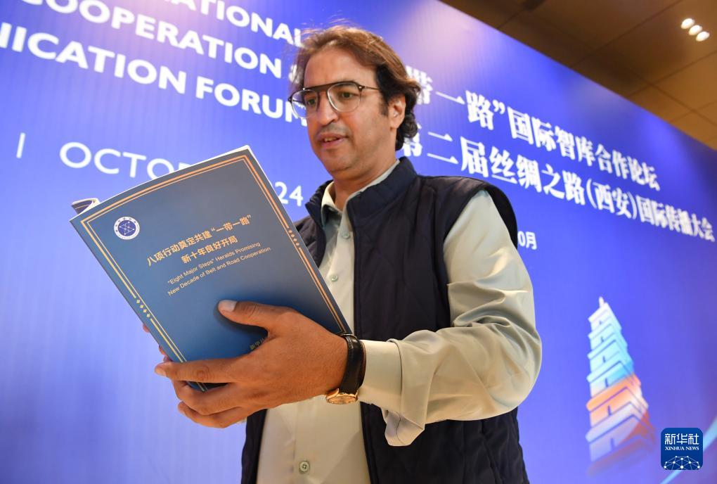 當(dāng)日,在“一帶一路”國際智庫合作論壇暨第二屆絲綢之路(西安)國際傳播大會(huì)上,新華社國家高端智庫發(fā)布了《八項(xiàng)行動(dòng)奠定共建“一帶一路”新十年良好開局》智庫報(bào)告。新華社記者 邵瑞 攝