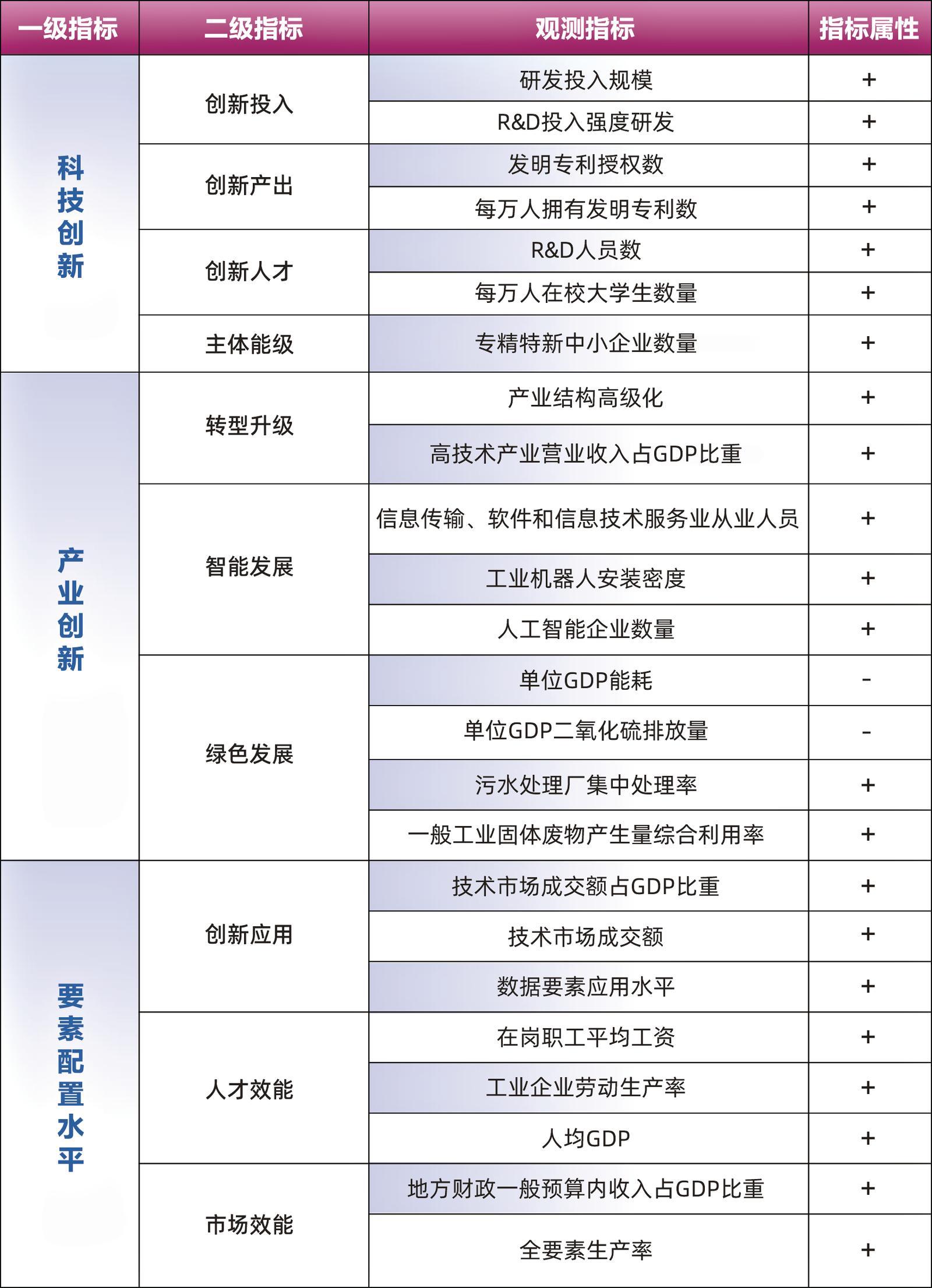 《報告》構(gòu)建涵蓋科技創(chuàng)新、產(chǎn)業(yè)創(chuàng)新、要素配置三大維度的指標(biāo)體系,下設(shè)10余項二級指標(biāo),全面評估城市新質(zhì)生產(chǎn)力發(fā)展水平??萍紕?chuàng)新是新質(zhì)生產(chǎn)力的核心驅(qū)動,是突破傳統(tǒng)生產(chǎn)要素約束、催生新產(chǎn)業(yè)新動能的關(guān)鍵。將科技創(chuàng)新作為一級指標(biāo),直接對應(yīng)新質(zhì)生產(chǎn)力“創(chuàng)新起主導(dǎo)作用”的本質(zhì)特征。產(chǎn)業(yè)創(chuàng)新是新質(zhì)生產(chǎn)力的落地載體,也是發(fā)展新質(zhì)生產(chǎn)力的落腳點,通過傳統(tǒng)產(chǎn)業(yè)轉(zhuǎn)型升級、戰(zhàn)略性新興產(chǎn)業(yè)培育發(fā)展與未來產(chǎn)業(yè)規(guī)劃布局,推動現(xiàn)代化產(chǎn)業(yè)體系完善與經(jīng)濟(jì)高質(zhì)量發(fā)展。要素配置是新質(zhì)生產(chǎn)力的效率保障,通過優(yōu)化創(chuàng)新應(yīng)用、人才效能、市場效能,提升全要素生產(chǎn)率。新質(zhì)生產(chǎn)力不同于以往只強調(diào)科技單一維度的評價,該體系強調(diào)系統(tǒng)觀,涵蓋技術(shù)革命性突破、產(chǎn)業(yè)深度轉(zhuǎn)型升級和生產(chǎn)要素創(chuàng)新性配置3個層面,其中“新”代表著新技術(shù)與新產(chǎn)業(yè),“質(zhì)”代表著高效能與高質(zhì)量。
