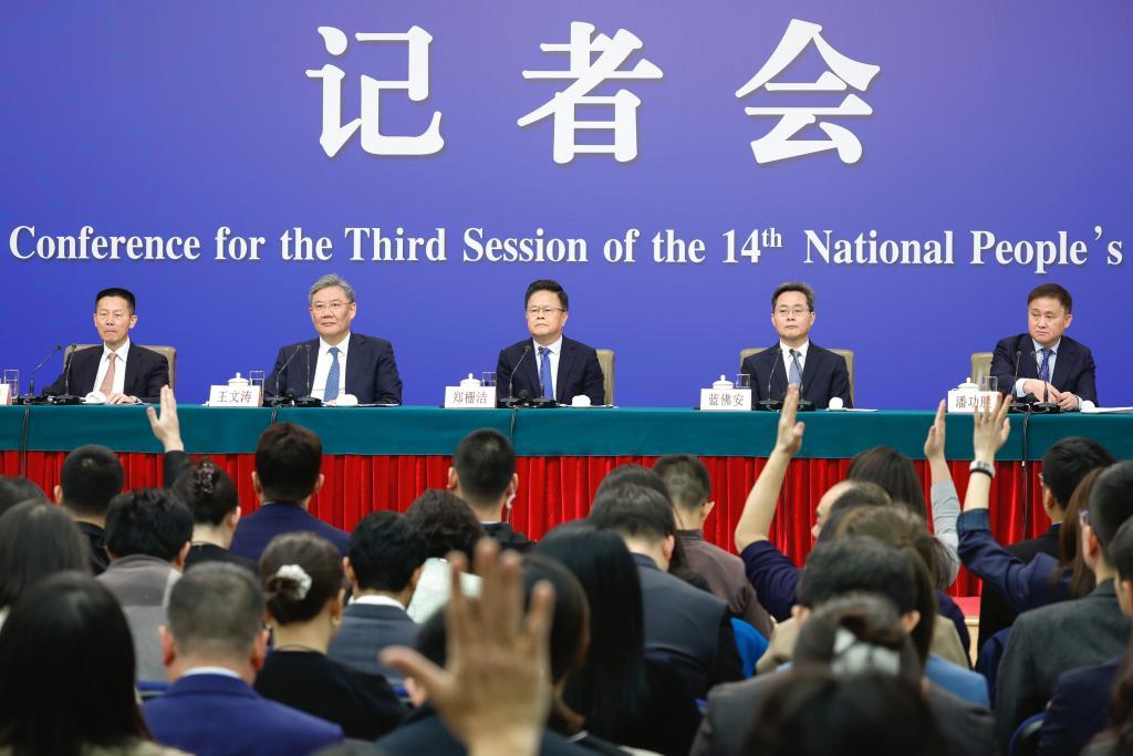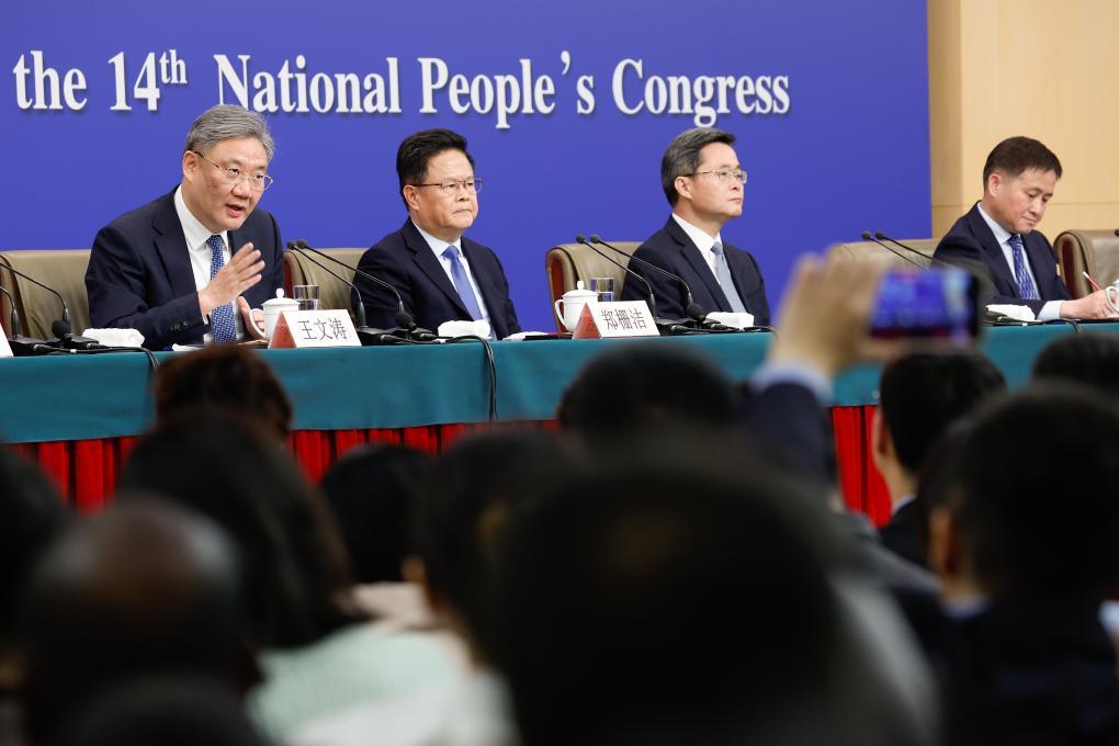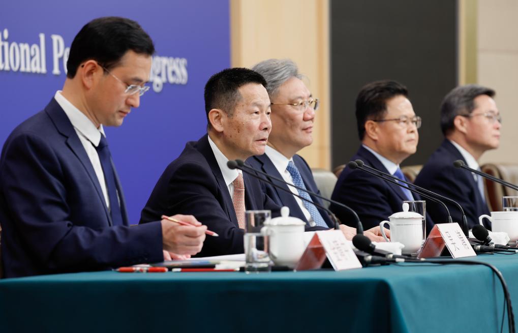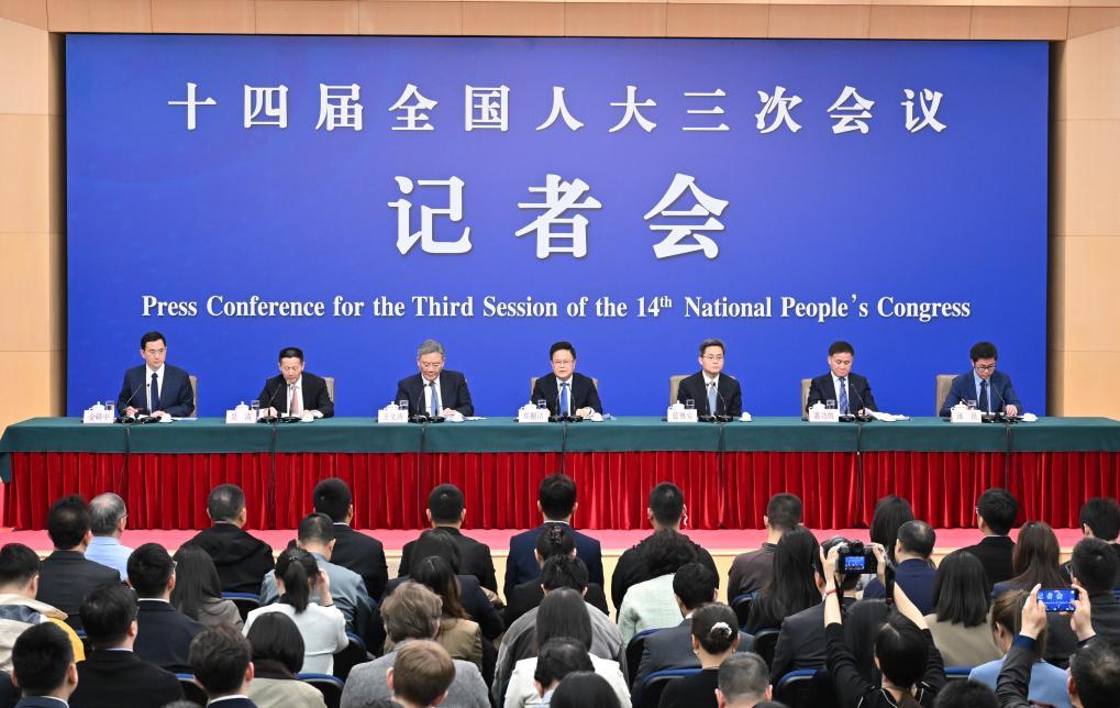 3月6日,十四屆全國(guó)人大三次會(huì)議在北京梅地亞中心新聞發(fā)布廳舉行記者會(huì)。國(guó)家發(fā)展和改革委員會(huì)主任鄭柵潔、財(cái)政部部長(zhǎng)藍(lán)佛安、商務(wù)部部長(zhǎng)王文濤、中國(guó)人民銀行行長(zhǎng)潘功勝、中國(guó)證券監(jiān)督管理委員會(huì)主席吳清就發(fā)展改革、財(cái)政預(yù)算、商務(wù)、金融證券等相關(guān)問題回答中外記者提問。