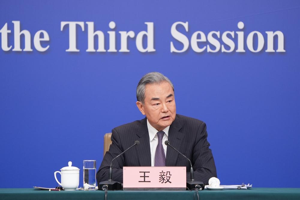 3月7日,十四屆全國人大三次會議在北京梅地亞中心新聞發(fā)布廳舉行記者會。中共中央政治局委員、外交部長王毅就中國外交政策和對外關(guān)系回答中外記者提問。 新華社記者 陳曄華 攝