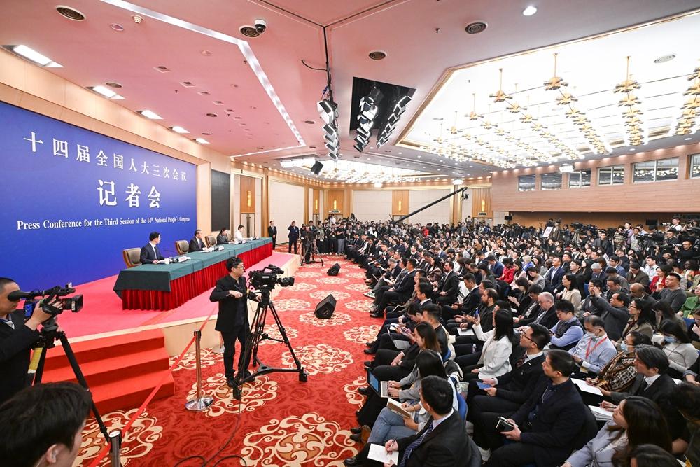 3月7日,十四屆全國人大三次會議在北京梅地亞中心新聞發(fā)布廳舉行記者會。中共中央政治局委員、外交部長王毅就中國外交政策和對外關(guān)系回答中外記者提問。這是記者在現(xiàn)場采訪。 新華社記者 陳曄華 攝