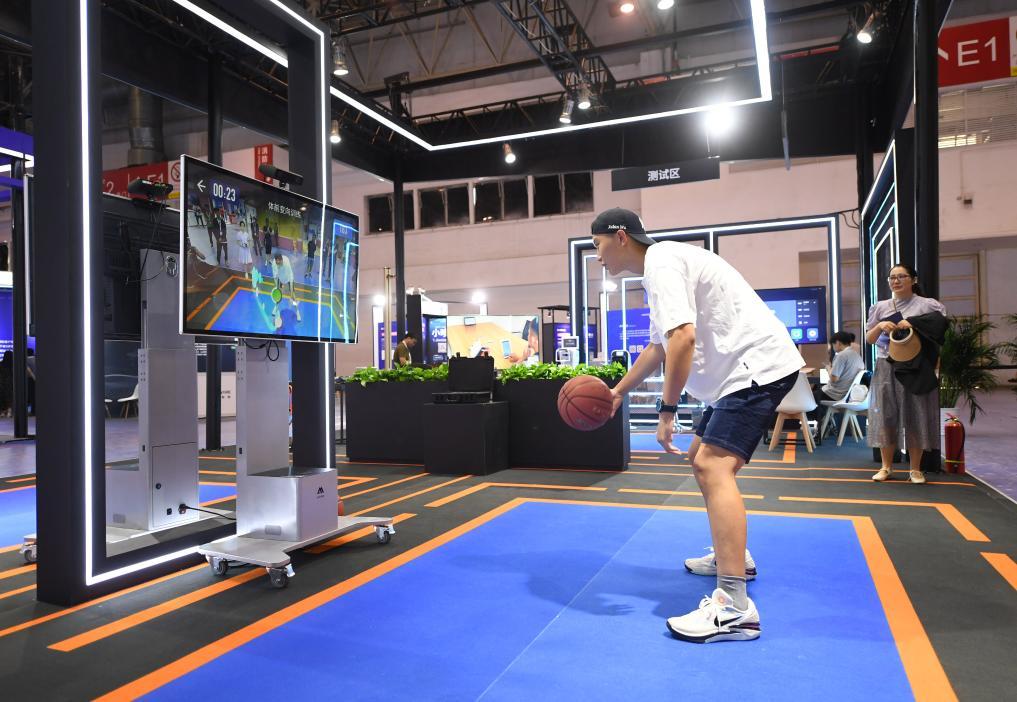 2023年8月25日,在HICOOL2023全球創(chuàng)業(yè)者峰會(huì)展覽展示區(qū),觀(guān)眾體驗(yàn)AI智慧體育運(yùn)動(dòng)系統(tǒng)。當(dāng)日,HICOOL2023全球創(chuàng)業(yè)者峰會(huì)在位于北京市順義區(qū)的中國(guó)國(guó)際展覽中心(新館)開(kāi)幕。新華社記者 任超 攝
