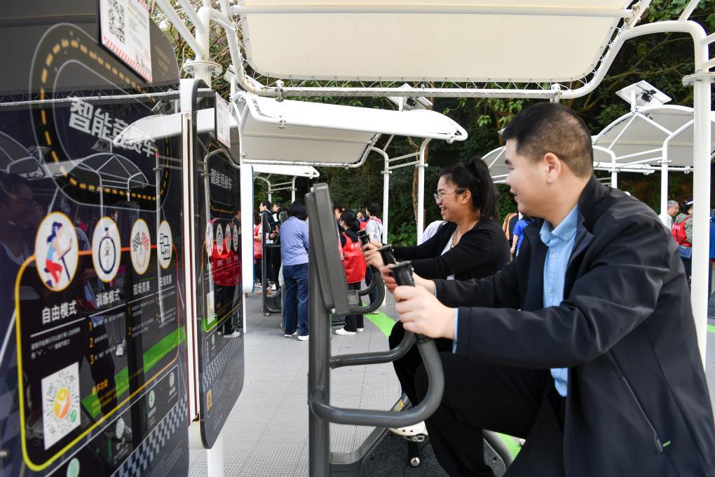 2023年4月24日,市民在福州市鼓樓區(qū)西河智慧體育公園使用智能競(jìng)賽健身車(chē)。新華社記者 林善傳 攝