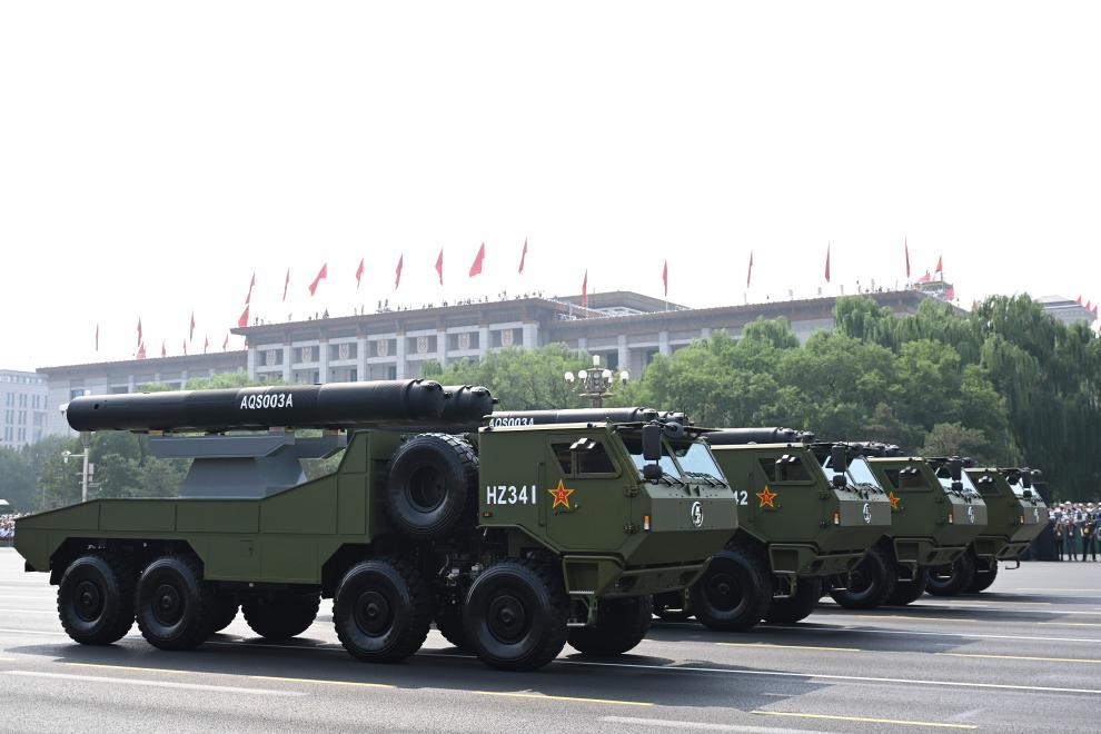 9月3日,紀(jì)念中國(guó)人民抗日戰(zhàn)爭(zhēng)暨世界反法西斯戰(zhàn)爭(zhēng)勝利80周年大會(huì)在北京隆重舉行。這是水下兵器方隊(duì)接受檢閱。新華社記者 張鋮 攝