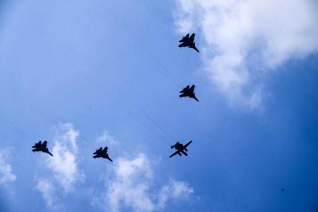 9月3日,紀(jì)念中國(guó)人民抗日戰(zhàn)爭(zhēng)暨世界反法西斯戰(zhàn)爭(zhēng)勝利80周年大會(huì)在北京隆重舉行。這是艦載機(jī)梯隊(duì)接受檢閱。新華社記者 鄭煥松 攝